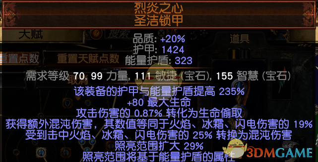 衣服强烈推荐这件衣服,有伤害,高护甲,而且因为点了免疫混沌伤害的原因,直接减免25%的元素伤害,硬如哈士奇