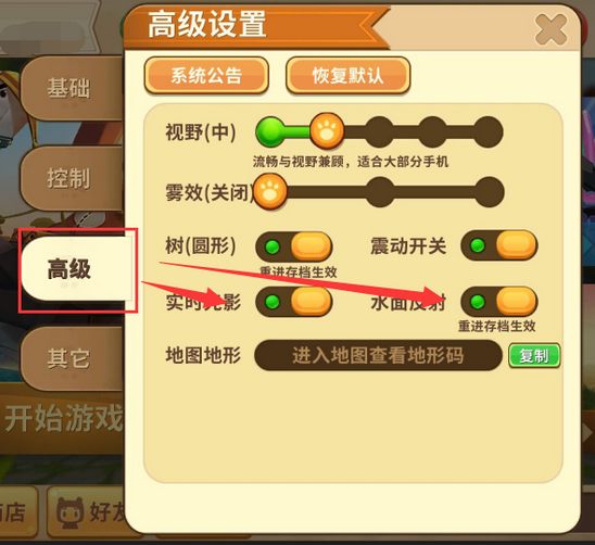 登录迷你世界手机版,点击右上角的齿轮,再点击【游戏设置】。手机版需要更新下载到0.25.6版本。点击高级里面,把实时光影和水面反射都选起来。再进入到游戏里面就可以看到光影效果啦。调的时候要注意手机的配置,太低还是不开为好。