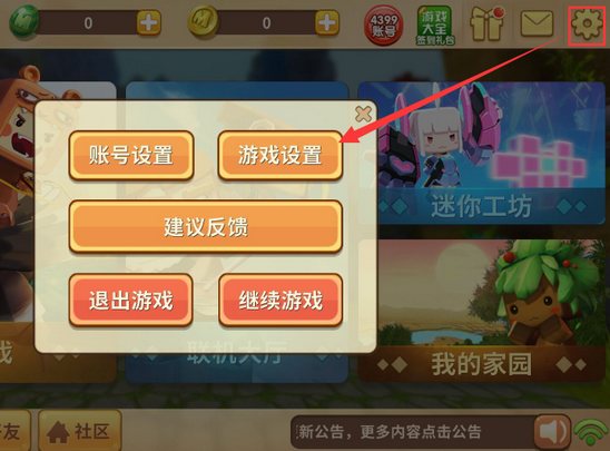 登录迷你世界手机版,点击右上角的齿轮,再点击【游戏设置】。