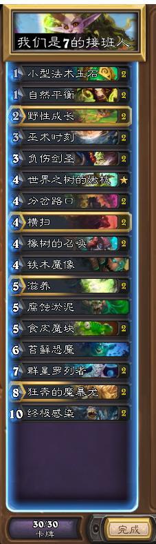昨天给大家试完了一波官推的复活牧,不知道小伙伴们体验如何。今天给大家带来另一套官推卡组--群星德,看看自从AV娜光荣下岗以后,遁入标准的群星德能否接过7酱的大旗。