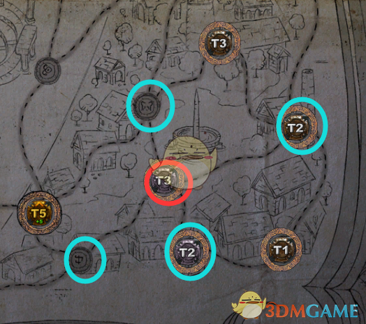 目前与T3恶念牢笼相邻的图有T2危城巷弄,T2隐晦牢狱,T4失序教院,T4城中广场。