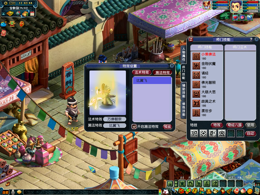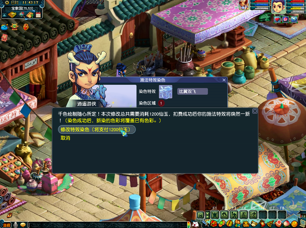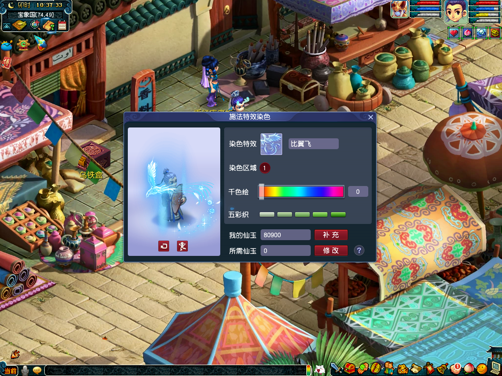 前往宝象国(75,53)找到逍遥游侠,即可开始施法特效染色。