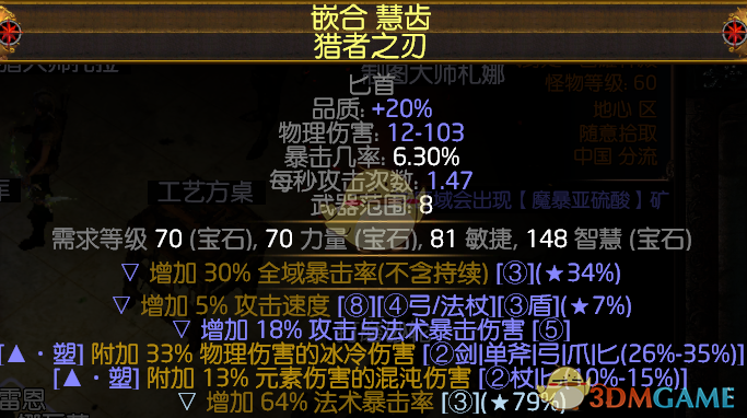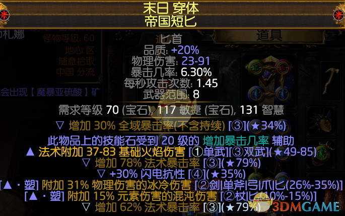 T1额外混沌伤害,T1暴击伤害,我是看中这个便宜,施法速度弥补了爆伤 2E
