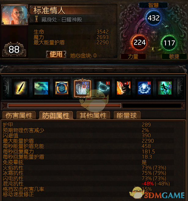 (防御很低,所以非常吃走位,可以通过戒指和手套把抗补高点,我是纯属靠欧克的35%全抗)