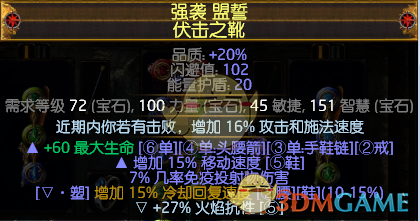 鞋子:星空底洗出冷却-15%、躲避伤害,血量和魔力