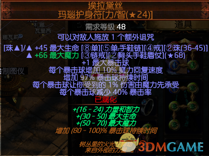 手套:高血高魔高抗高攻速瓦出12级元素要害