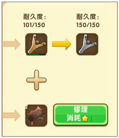 维修物品是需要放入合成时的材料,比如维修弹弓时,需要消耗软皮革和星星。