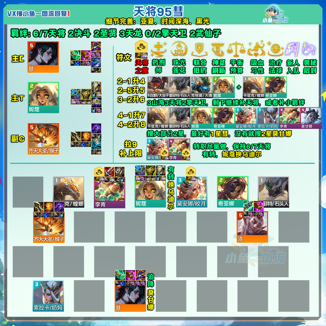 云顶之弈S11赛季主题为《画中灵》,是一个以神话为主题的赛季。在新赛季的更新上线许多新的英雄,和羁绊还有个性化内容以及机制,那么在新s11赛季有哪些强力阵容,下面就给大家带来s11天将95牵狗阵容推荐。