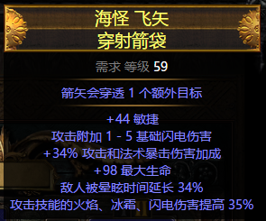 穿透箭袋:黄箭袋,最好有高血量、敏捷、抗性,如果有额外箭矢更好。刷图伤害溢出,所以攻击词缀无所谓。进阶选择:狼王箭袋,清图更爽快无脑。