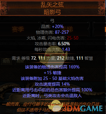 打脸弓:入门选择,简单粗暴的获取高额增伤,就是贴脸打在坚韧不够时有一定危险。进阶选择:+3黄弓带各种变态额外增伤词缀。
