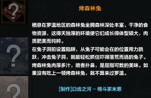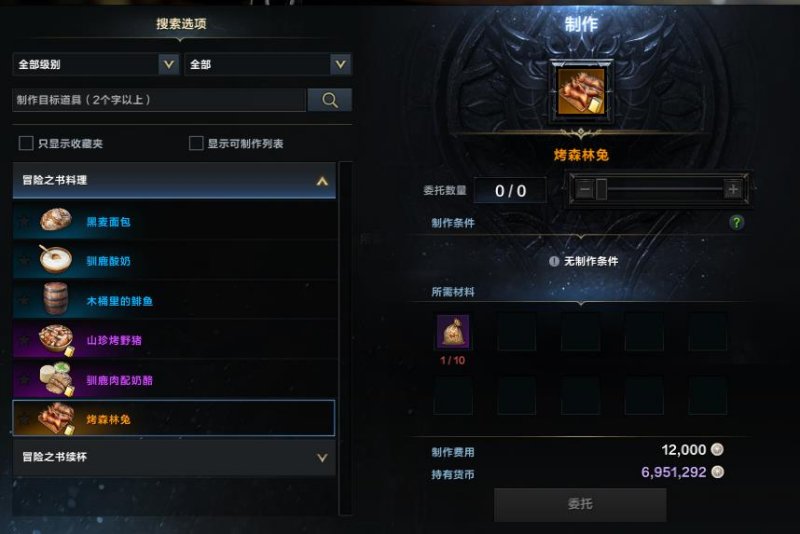 在制作料理处使用10份森林兔肉可以制作料理烤森林兔。