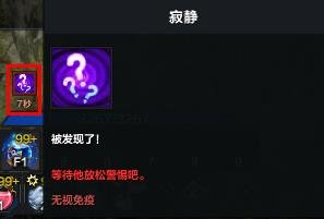 在潜狼之地的标记地点,当进入正确区域时会在左上角buff栏直接出现安静奔走或是先在右上角buff栏出现寂静。