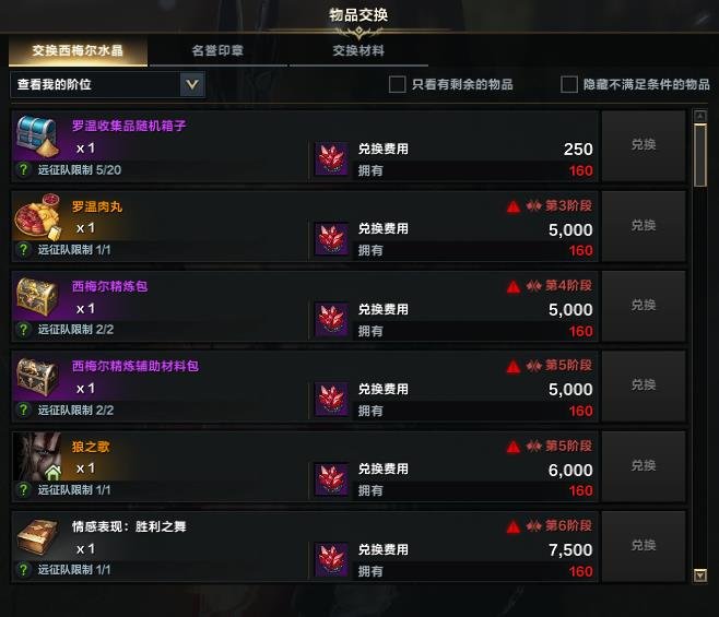 需要罗温荣誉阶段到达三阶段,在交换西梅尔水晶处兑换。