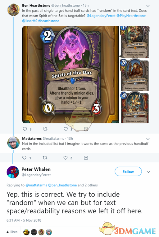 在过去所有的能给手牌随从buff的卡牌在卡排文字描述中都有“随机”字样。这是否意味着蝙蝠之灵的buff效果是可以指定的?