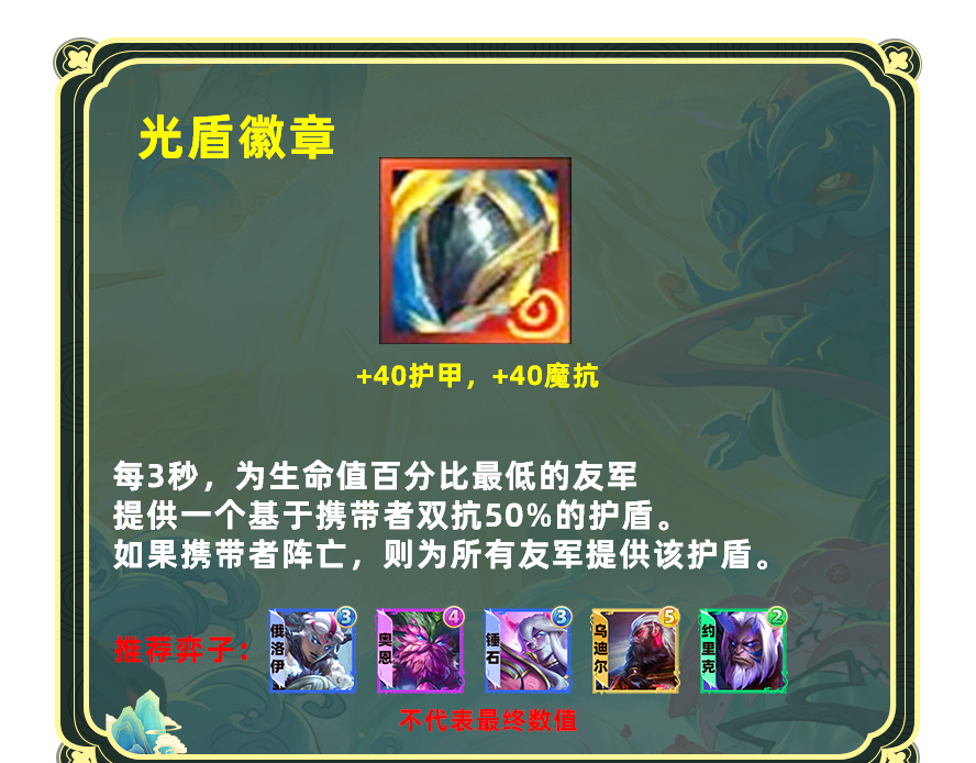 适配单位:前排棋子,俄洛伊、奥恩、锤石、乌迪尔、泰坦、安妮、洛。