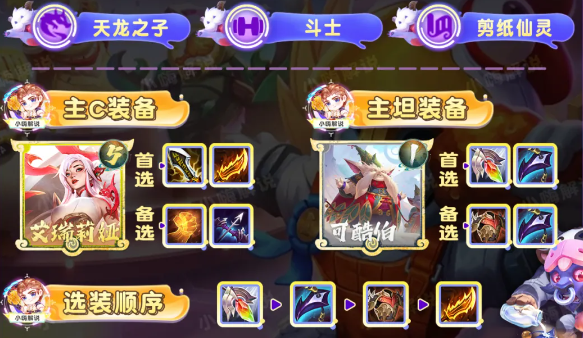 阵容理解:可酷伯3星+3件肉装在3、4阶段可以当主C来用(通过击杀能够获得大量金币),中后期血量维持在6000+稳定主坦。