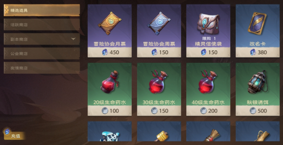 除直购外,玩家还可前往商店-精选道具,使用“无色晶石”购买月票/周票,而无色晶石可通过游戏内玩法获得,可以说是人人免费购买月卡了。