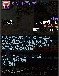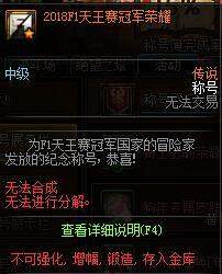 这次纪念F1 天王赛活动有一个【2018F1 天王赛冠军荣耀】称号可以兑换,