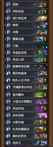大家每天玩天梯,翻来覆去就是那么几套卡组,很多玩家都已经腻了,下面带来一套骚套路亡语招募贼,有趣的同时兼具一定的强度,希望大家能够喜欢这套卡组。