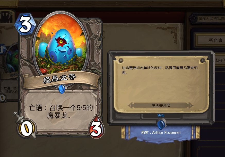 看起来我们没有什么送掉魔暴龙蛋的方法,但是我们有着不少能触发它亡语的卡牌,像是死金匕首,这把刀不仅可以在前期帮助我们控制场面抢夺节奏,也可以触发我们随从的亡语,由此可见跟我们魔暴龙蛋等亡语随从的相性非常好,而且我们还有食肉魔块这样强力的随从,配合我们的亡语随从效果拔群,可以给对手带来非常大的压力。