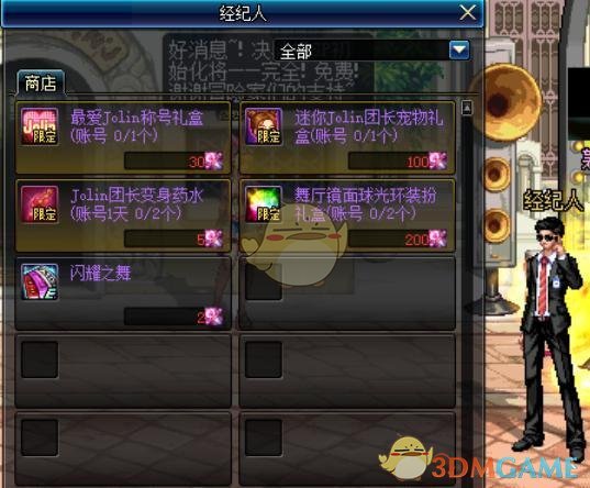 Jolin团长的音乐盒,这个使用后背景音乐将会变成我和我的歌曲,但是只对本角色有效,切换角色频道都会消失,但是在活动期间可以无限使用