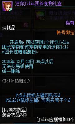 100个应援棒可以兑换到1个Jolin团长宠物礼盒,打开后可以获得1个迷你Jolin团长宠物,属性大家猜一猜能不能超过10点四维呢?此外还有一个宠物专用的迷你Jolin团长练舞服装扮,也就意味着这个宠物是这么多宠物中一个有装扮的宠物?好神奇的感觉