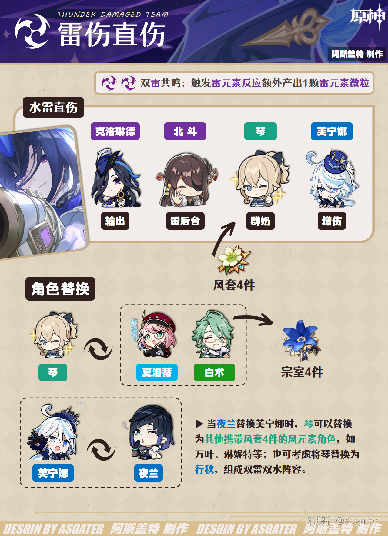 ② 如果是为了保持芙宁娜每轮大招的全队增伤幅度,琴也可用其他群奶暂替,如夏洛蒂、白术等。