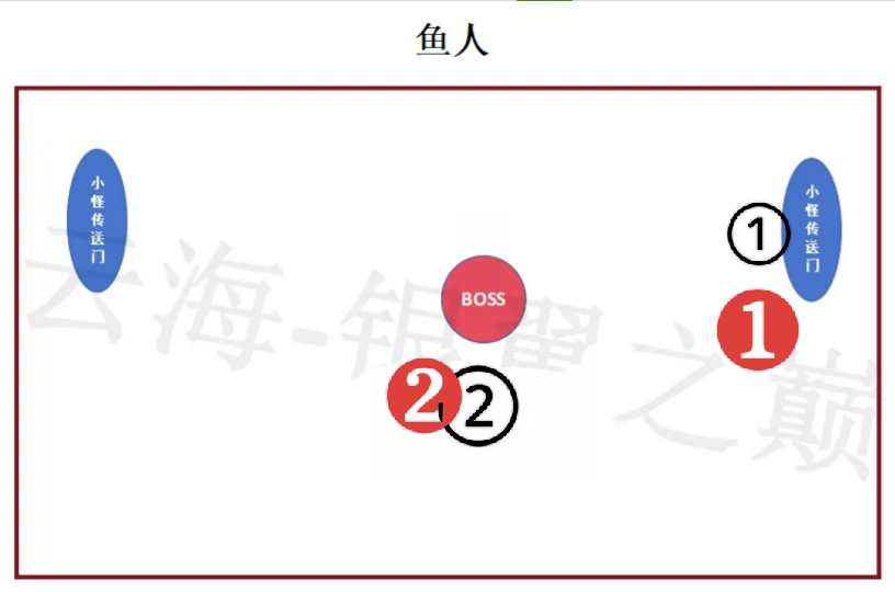 1:开局所有人❶①位置集合,坦克远程嘲讽之后立刻往小怪的门那里跑紧贴着门,之后奶妈给一个免伤技能帮助T抗住倒计时4:18秒的三连击,时间到4:00秒小怪刷新连BOSS和小怪一起a掉,这时防战需要交5技能和一瓶大红接BOSS和全部小怪。