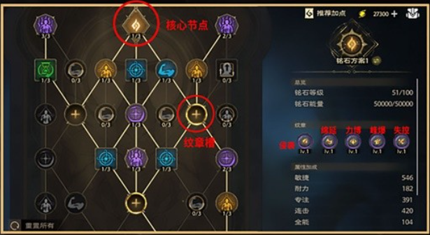 并且我们需要优先开掉中间的核心节点,以及5个纹章槽,这两个提升战力最高。