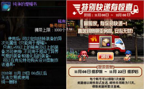 一共送两次888点券礼盒,登陆游戏就可以免费获得,另外低价增幅书的价格也不便宜,4000万只是相对于拍卖行要低了很多,如果有打算增幅并且不着急,可以等到春节前后再增幅,到时价格应该不超过2000万。