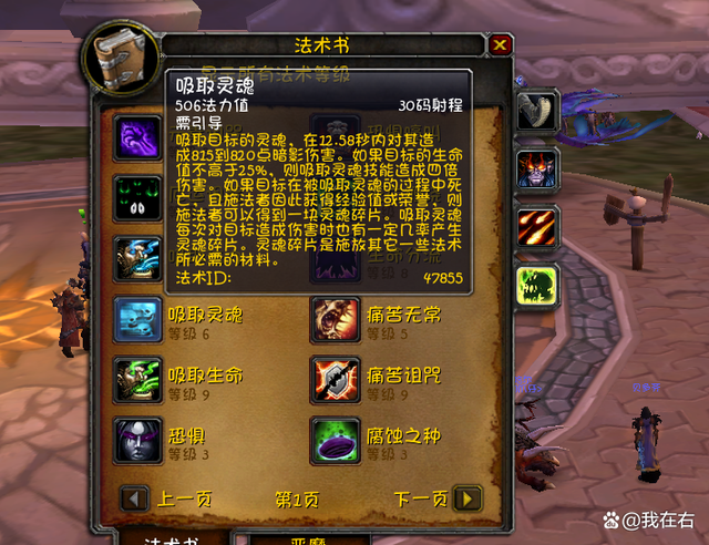 由此得出痛苦术的技能循环优先级是:首先确保鬼影缠身常驻,其次确保痛苦无常常驻,最后尽量确保痛苦诅咒常驻,保持好这三个DOT常驻不断基本就可以达到90分的标准了。
