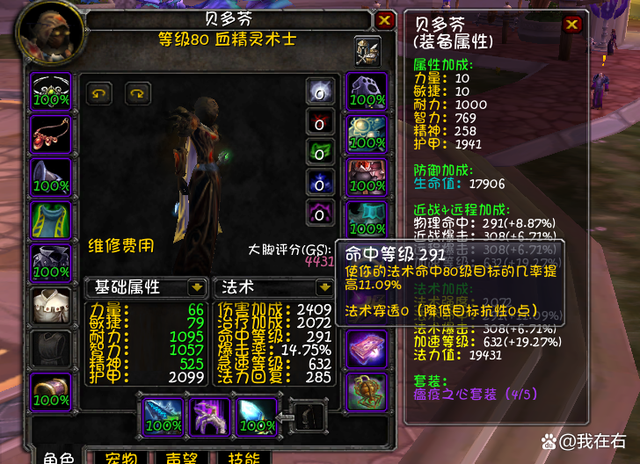 80级的法系DPS需要17%的命中,术士天赋自带3%命中,团队里的暗牧和鸟德可以提高3%命中,因此术士仍需11%命中才算及格,换算成命中等级是289点命中等级。其中联盟有德莱尼的鼓舞灵气可以提高1%命中,因此联盟的术士需要10%的命中,换算成命中等级是263点。