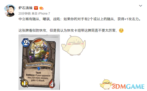 好斗的地精是炉石传说新推出的一张中立新卡,很多人对于这场卡的使用争议很大。作为随从卡,好斗的地精适合快攻卡组吗?小编下面就为大家带来炉石传说好斗的地精点评,一起来看看吧。