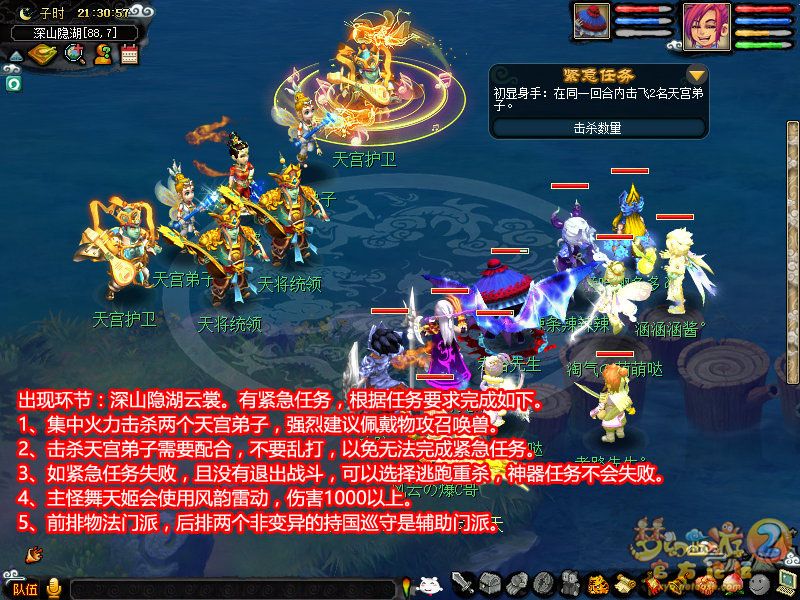 2、击杀天宫弟子需要配合,不要乱打,以免无法完成紧急任务