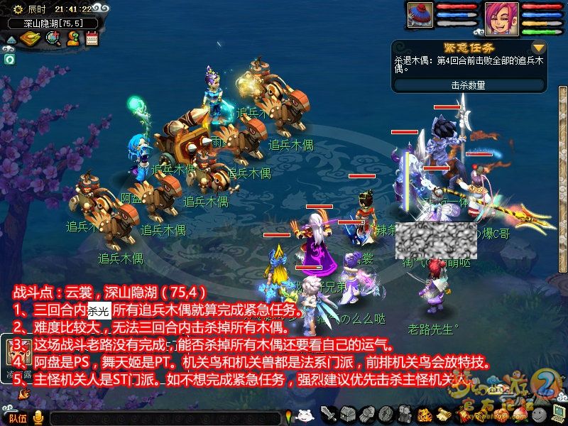5、主怪机关人是ST门派。如不想完成紧急任务,强烈建议优先击杀主怪机关人。