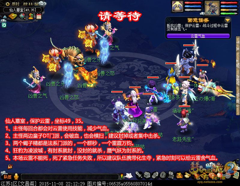 5、本场云雷不能死,死了紧急任务失败,所以建议队伍携带化生寺,紧急时刻可以给云雷舍气血。