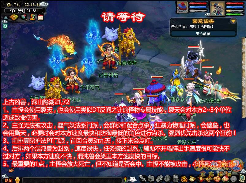 2、主怪两边童子DT门派,会破血,也会横扫,建议封掉或者集中击杀。