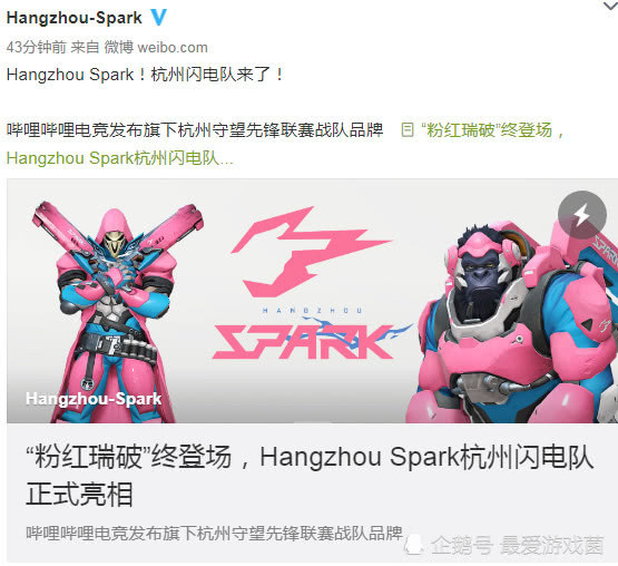 11月15日晨,哔哩哔哩电竞公司杭州守望先锋队官方微博正式公布战队队名:Hangzhou Spark杭州闪电队,网友们关心已久的队名经过长达一个月的讨论,终于被官宣了出来。