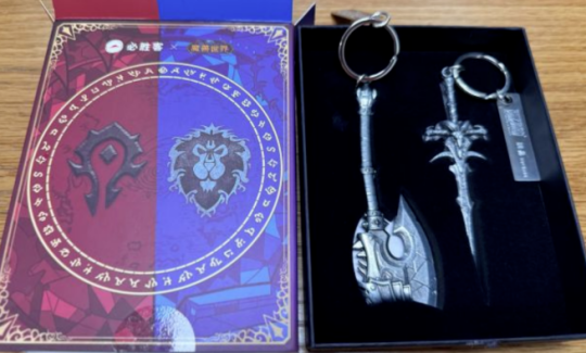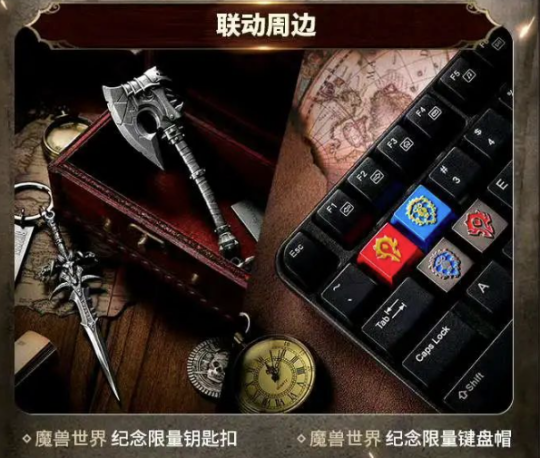 279魔兽尊享多人餐:选2(武器钥匙扣1套/合金阵营键帽1套/纪念桌垫2张)