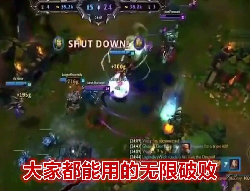 第二位:大家都能用的无限破败,该BUG出现在2014年2月,无限破败BUG可以说比之前个别英雄BUG更加泛用,最早发现并利用这个BUG的是网通区名叫“贝贝7758”的玩家。该BUG通过自行修改游戏目录中的文件而形成的,凑够3200金币可以瞬间秒人游戏结束。
