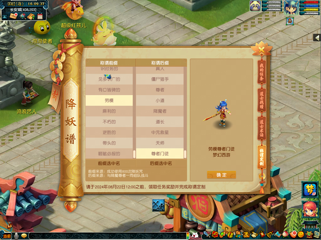 僵尸阵营和道士阵营的少侠分别完成尸王谱、降妖谱上记载的任务,可以解锁炫酷拉风的定制称谓。