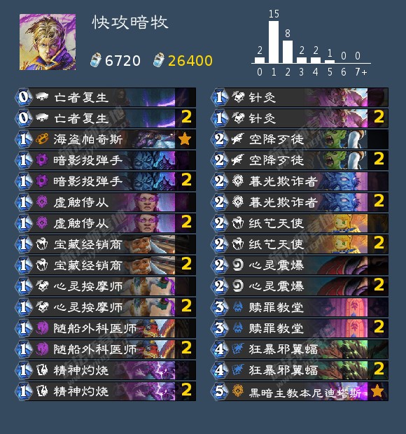 老当益壮经典快攻暗牧,和海盗瞎一样,胡起来谁也拦不住,出伤比海盗瞎还快,回合数更短。