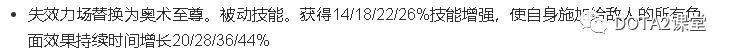 拉比克的失效力场重做,变成了新技能奥术至尊,获得技能增强。自身给敌人释放的所有负面效果技能例如自身的举、偷到的控制、减速、沉默等技能的持续时间都会增长44%,这个就有点厉害了。偷到莱恩的羊,比莱恩羊的时间更久??