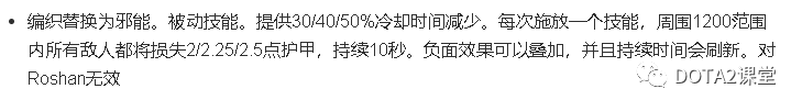 戴泽的大招变成了邪能,被动技能,能够减少技能和物品的冷却cd,这就厉害了。中后期秘法冷却时间只有二十几秒,梅肯冷却时间只有三十几秒,大梅肯冷却时间只有20秒,自己的暗影波冷却时间只有4秒不到,打团就是无限奶。关键只要戴泽使用技能,大招还能让1200码范围内的敌人持续降低护甲,可以不断叠加。这意味着打团只要戴泽不死,一直在用技能,对面护甲很容易会减为负数。