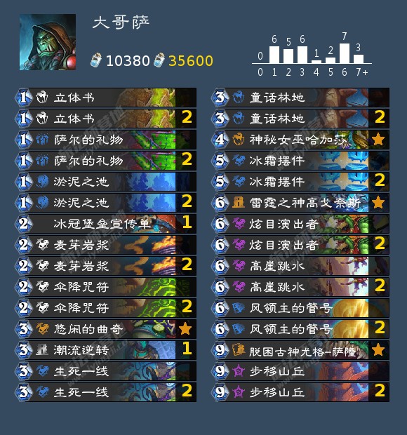 卡组构筑较为自洽优美,起手留下童话林地,童话林地检索出神秘女巫哈加莎和炫目演出者。女巫哈加莎检索出冰霜摆件和高崖跳水。冰霜摆件可以抗住快攻,高崖跳水可以返场回血。同时由于童话林地检索出了炫目演出者,还能保证高崖跳水必拉出大哥随从,拉出的大哥随从在攻击后还可以被淤泥之地进化得以留在场上。而如果对方场面不需要被用高崖跳水解场,则可以使用炫目演出者铺场进攻。这一系列单卡之间配合融洽、节奏丝滑,颇有构筑的美感。而强度上卡组也并不逊色一种主流,十分推荐尝试。