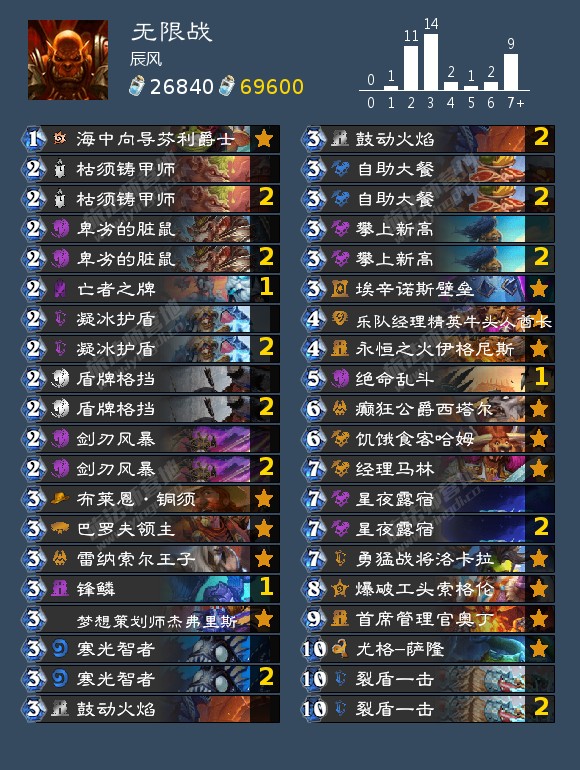 来自辰风的无限战,它使用这套卡组在前百划水,这里仅做分享,给想玩的老哥提供一个便捷的抄处。