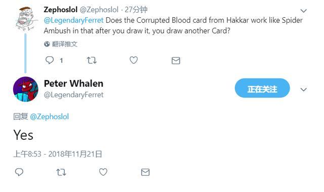 Q:堕落之血是像蜘蛛伏击和惊奇套牌那样抽到,释放,然后再抽一张牌吗?