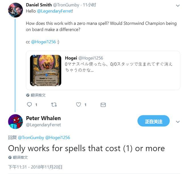 Q:如果有猛虎之灵的时候施放0费法术会怎么样?如果场上还有暴风城勇士呢?