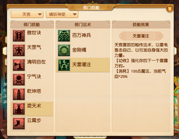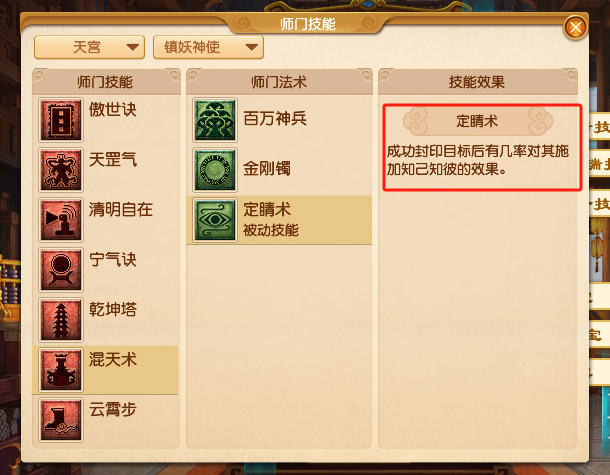 师门法术“镇妖神使”流派“天雷灌注”调整为“定睛术”