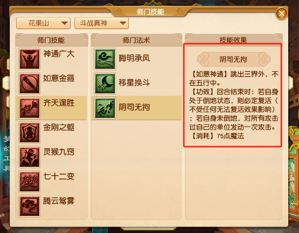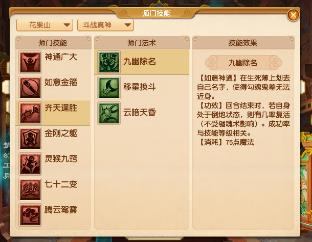 斗战真神流派 “九幽除名”调整为“阴司无拘”